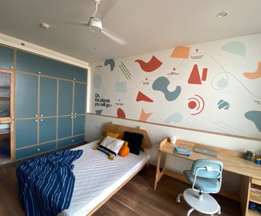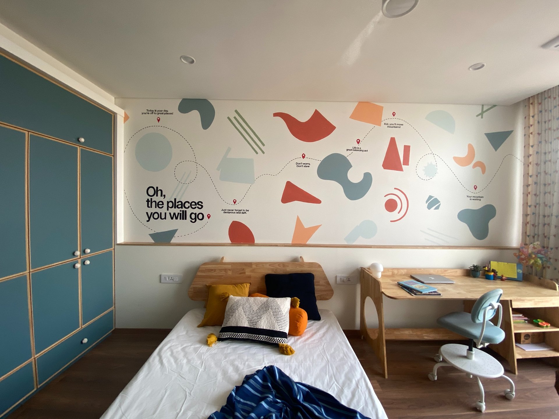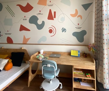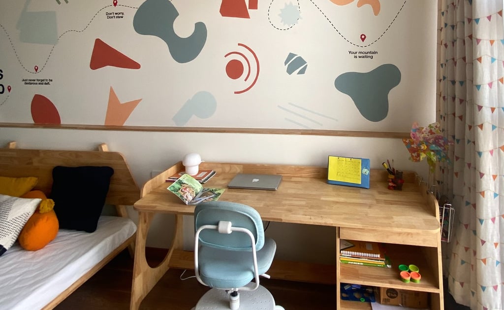Designing the interior of this kids room was all about translating tranquility and essence into the furnishings. Natural materials and curved shapes helped me achieve that.